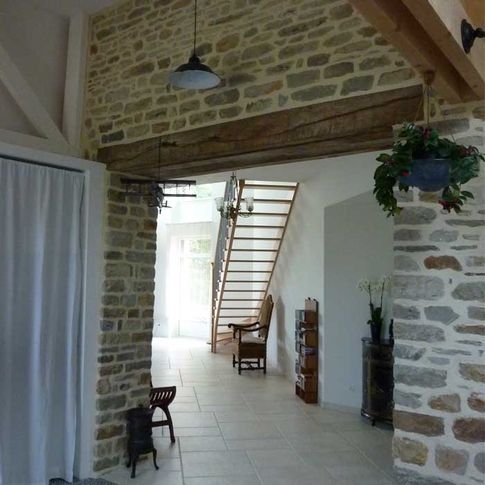 Ici nous avons ajouté des ouvertures en façade afin de conserver l'existant tout en la remodelant pour rendre le tout homogène. Aussi des puîts de lumière participent à l'éclairage des pièces.